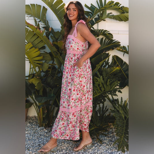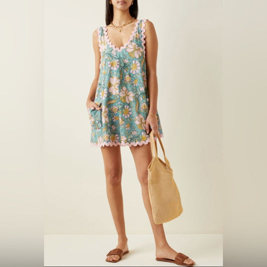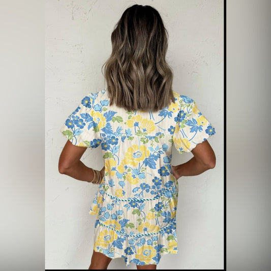 Fran- Floral Print Dress with Blue and Yellow Accents
